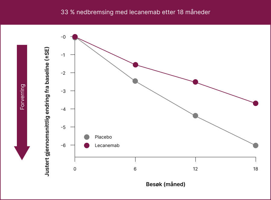 33 % nedbremsing med lecanemab etter 18 måneder3