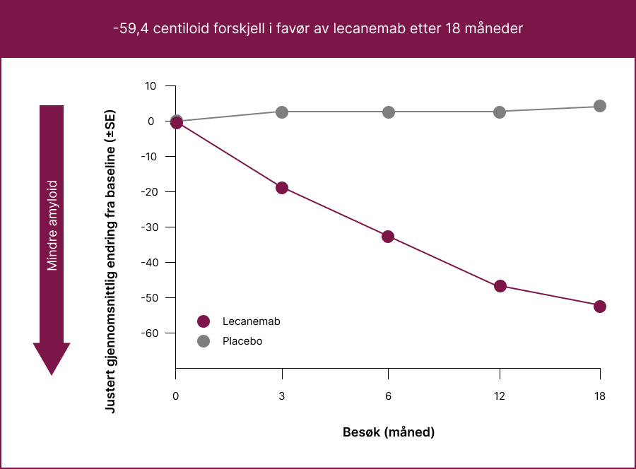 -59,4 centiloid forskjell i favør av lecanemab etter 18 måneder3
